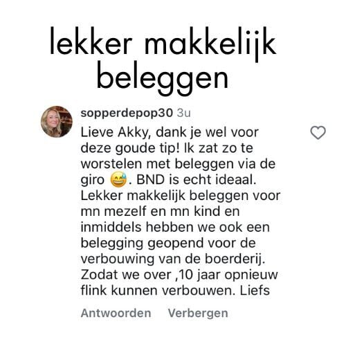Dit programma is bedoeld voor educatieve en informatieve doeleinden. Het is geen financieel advies. Ik geef geen garanties over rendement, winst of specifieke financiële uitkomsten. Beleggen brengt risico’s met zich mee en je kunt (een deel van) je inleg verliezen. Jij bent zelf verantwoordelijk voor je beslissingen en resultaten. Door dit programma te kopen, ga je ermee akkoord dat er geen beloftes of toezeggingen zijn gedaan over jouw persoonlijke resultaten. Wat voor mij of andere deelnemers werkt, is geen garantie voor jouw situatie. Jouw resultaat hangt af van veel factoren, waaronder je startpositie, keuzes, inzet en bereidheid om in actie te komen. Er worden geen refunds gegeven na 14 dagen. Alle aankopen zijn definitief.