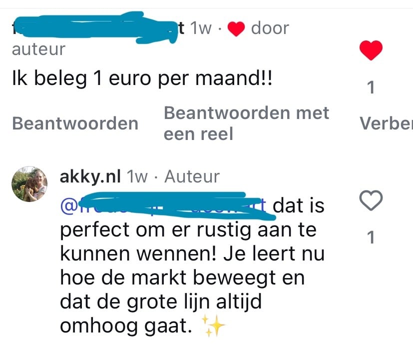 Niet veel verdienen is subjectief. Je kunt uiteindelijk een percentage van je inkomen gaan beleggen dat je ECHT kunt missen. Bijvoorbeeld 1%. Dit percentage schroef je op, naarmate er meer ruimte ontstaat in je leven. In de cursus leg ik dit uit. Starten met €1 inleg is sowieso goed voor je mentale voorsprong.