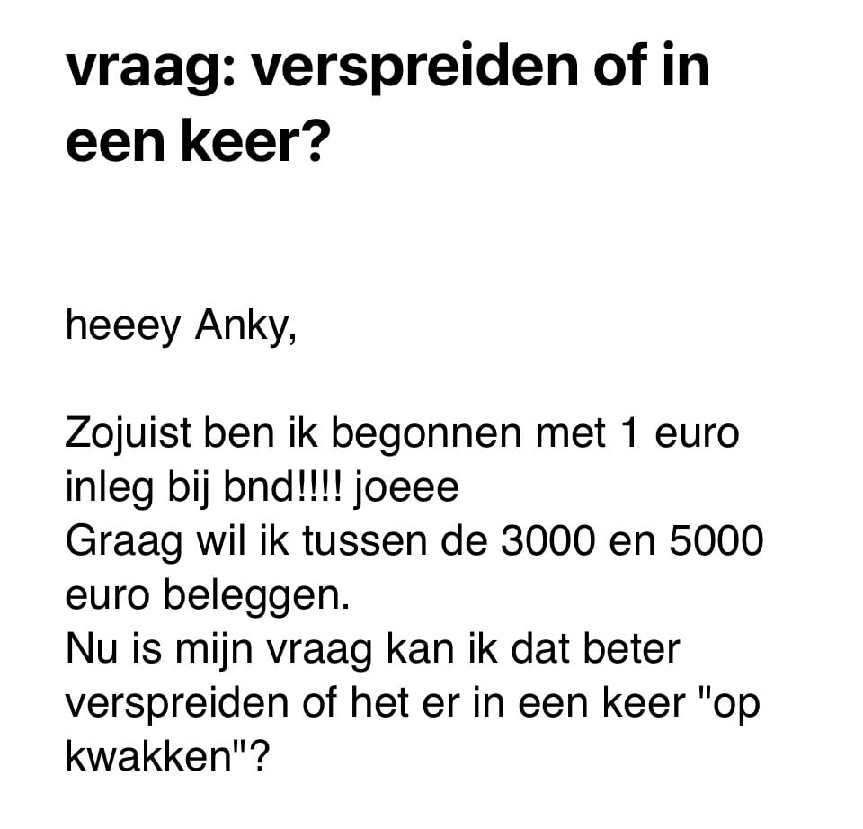En al die tijd bleef ik beleggen uitstellen. Vanwege precies de angst die jij ook voelt. 'Kies ik wel het juiste?' (Nee, ik koos de verkeerde, maar daardoor weet ik nu wél wat verstandig is).