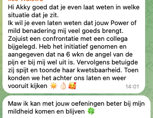De Telegram groep is niet verplicht. Je hoeft je niet uitgebreid voor te stellen en heftig te participeren. Soms is het gewoon fijn om iets wat je ontdekt of ervaren hebt te delen met anderen.