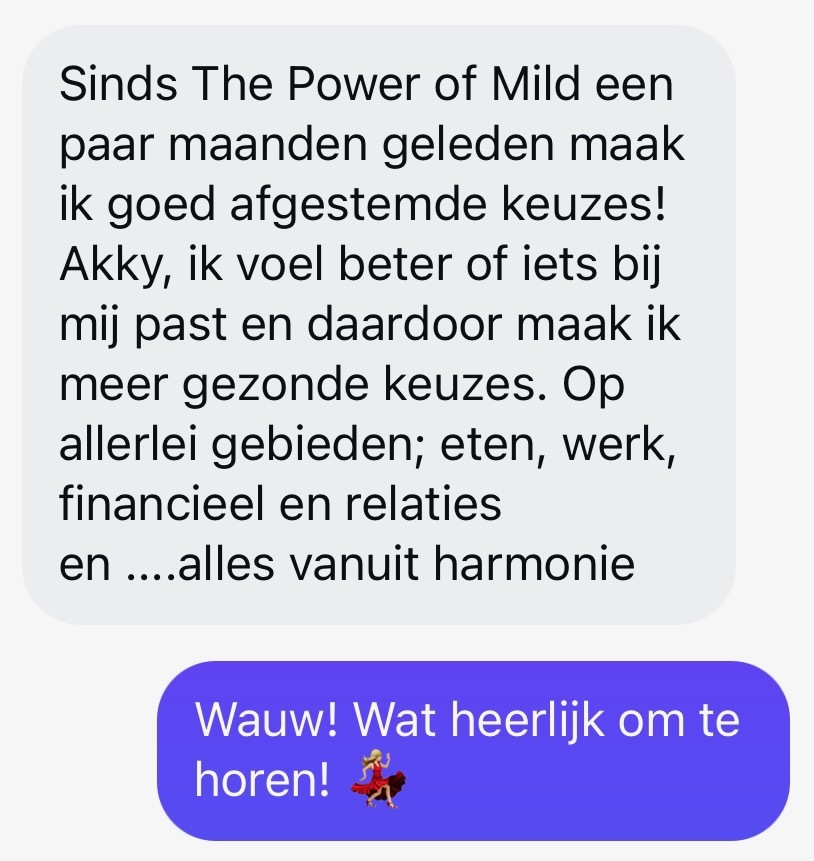 The Power of Mild is een zelfstudieprogramma zonder live begeleiding. Je volgt het helemaal op jouw tempo. Wel krijg je toegang tot een exclusieve Telegramgroep waar je mag delen, vragen stellen of gewoon meelezen zolang je wil.